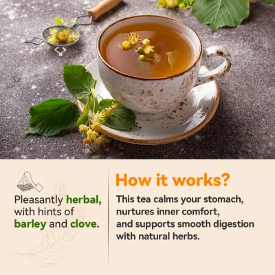 Ecofresh Stomach Tea is a gentle herbal infusion designed to calm the stomach, ease discomfort, and promote smooth digestion. Made from 100% natural, plant-based ingredients, this vegan and non-GMO tea combines time-tested herbs with modern wellness benefits. With soothing notes of barley and clove, it delivers both comfort and flavor in every cup. Perfect for daily use, it supports digestive vitality while nurturing overall gut health naturally.