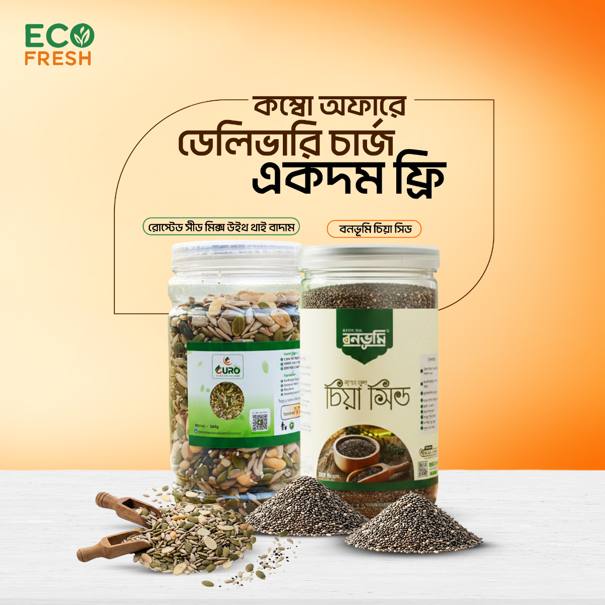 থাই নাট সহ রোস্টেড সিড মিক্স (৫০০ গ্রাম) + চিয়া সিডস (৫০০ গ্রাম)
